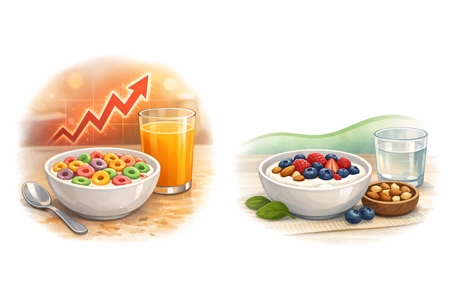 The glycemic index (GI) ranks foods based on how quickly they raise blood sugar. Foods with a high GI (like white bread, white rice, and sugary snacks) cause rapid spikes, while low-GI foods (like legumes, most vegetables, and whole grains) cause gentler rises.